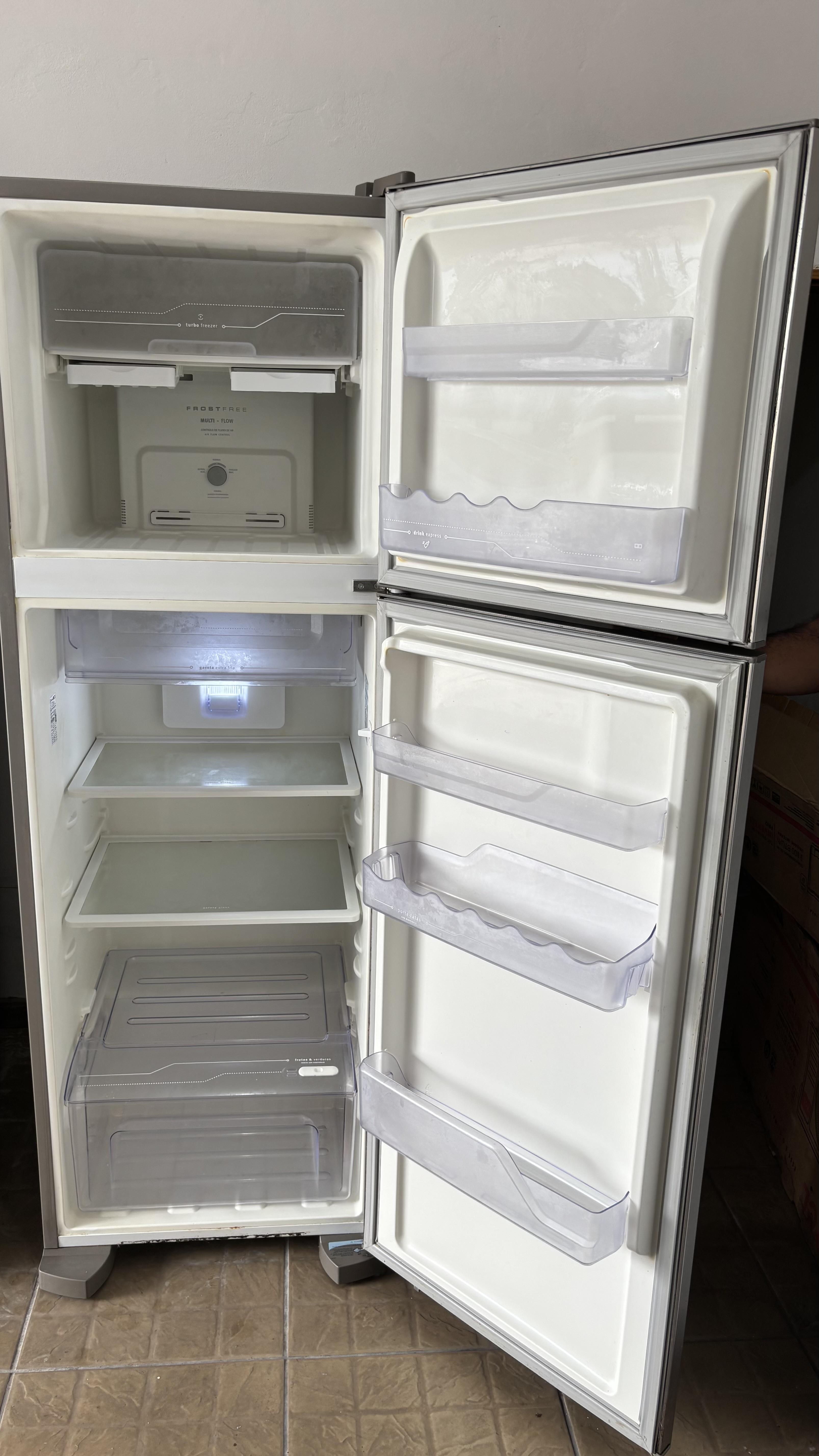 Geladeira Electrolux (usada) funcionando perfeitamente. 03 meses de garantia. Entregamos no local. Parcelamos em até 5x sem juros no cartão de crédito ou em até 10x com o juros da maquininha.